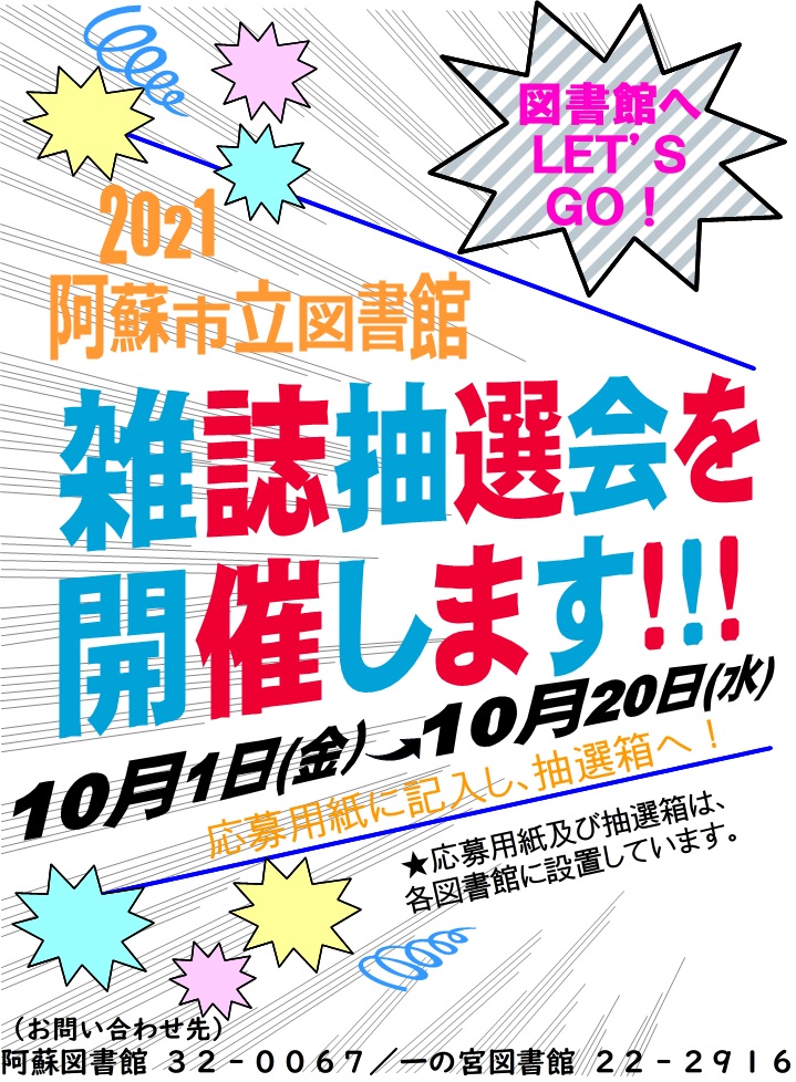 令和3年10月1日(金)~10月20日(水)の期間、雑誌抽選会を開催します!